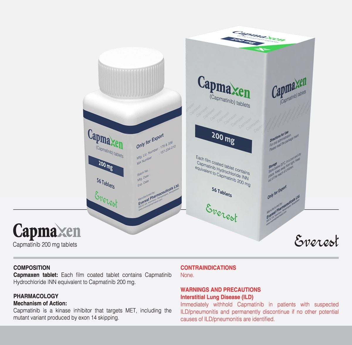 Capmaxen được chỉ định để điều trị cho bệnh nhân trưởng thành bị ung thư phổi không phải tế bào nhỏ di căn (NSCLC) có khối u bị đột biến dẫn đến chuyển tiếp trung mô-biểu mô (MET) exon 14 bỏ qua khi được phát hiện bằng xét nghiệm được FDA chấp thuận.