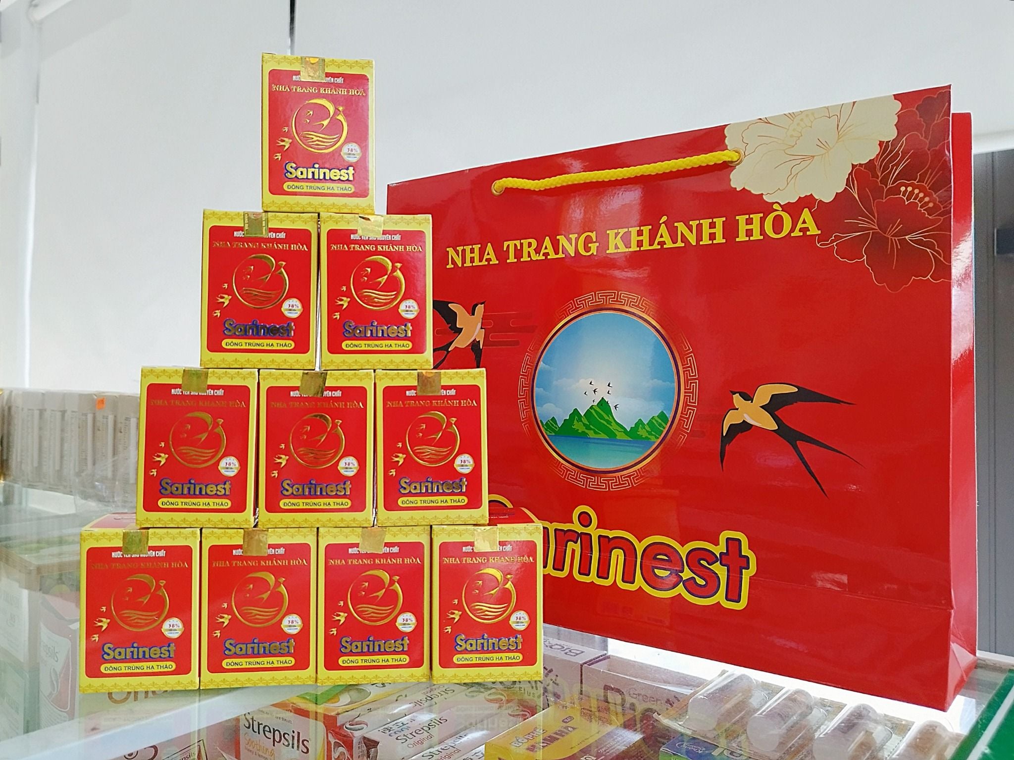 Combo 10 hộp nước yến sào nguyên chất Sarinest Nha Trang Khánh Hòa chất lượng thượng hạng - Vị không đường, đường phèn, đông tùng 38%