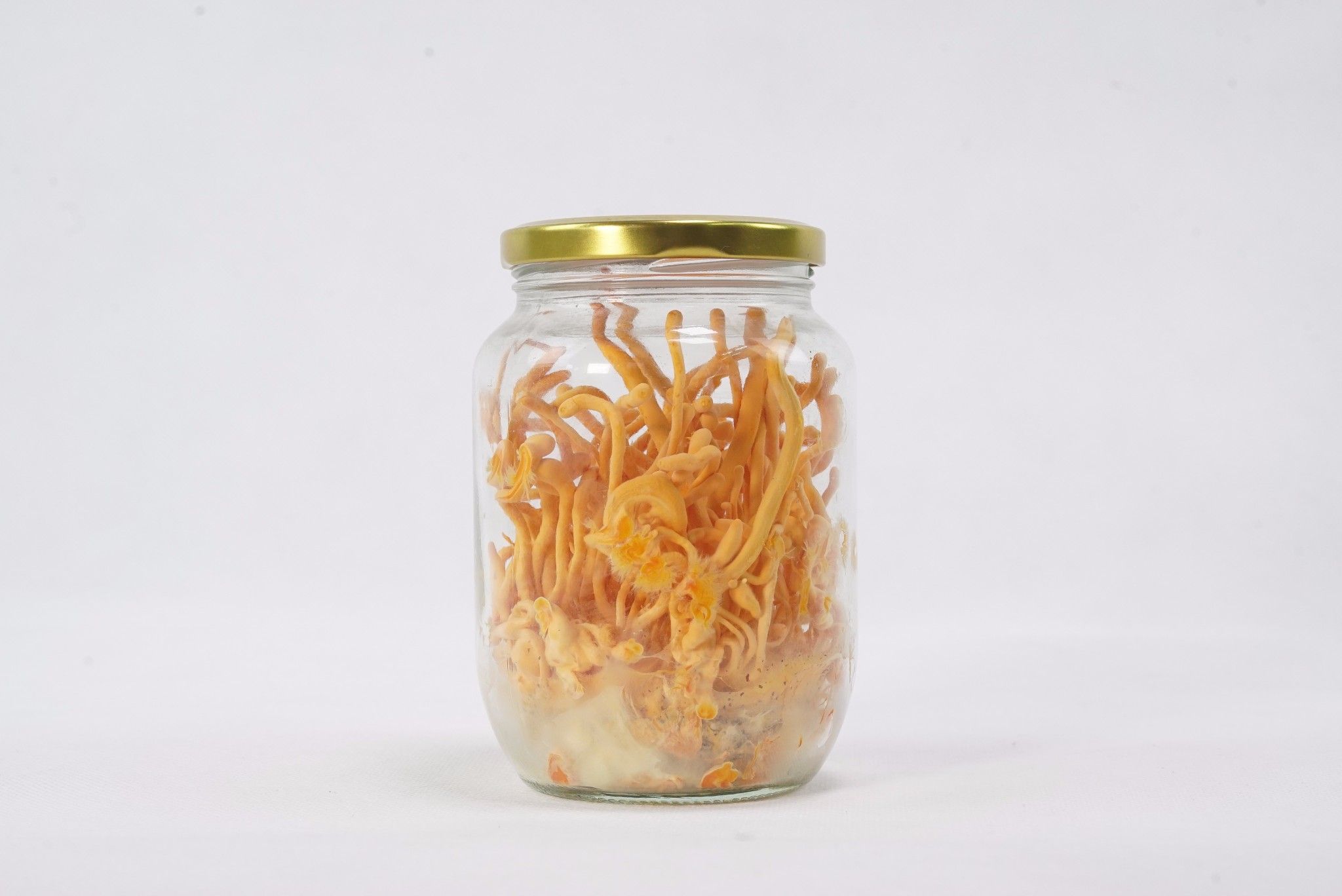 Đông trùng hạ thảo tươi của chúng tôi được nuôi trồng trên giống nấm Cordyceps militaris – một loại đông trùng hạ thảo có nguồn gốc Tây Tạng được nuôi cấy trên nhộng tằm và cơ chất tổng hợp từ gạo lứt và nước dừa.