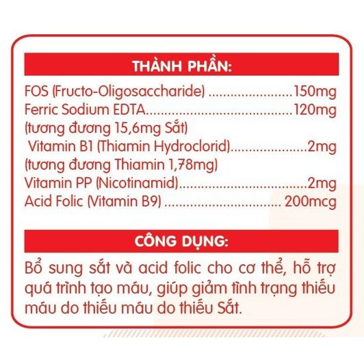 Bổ sung sắt và acid folic cho cơ thể, hỗ trợ quá trình tạo máu, giúp giảm tình trạng thiếu máu do thiếu Sắt
