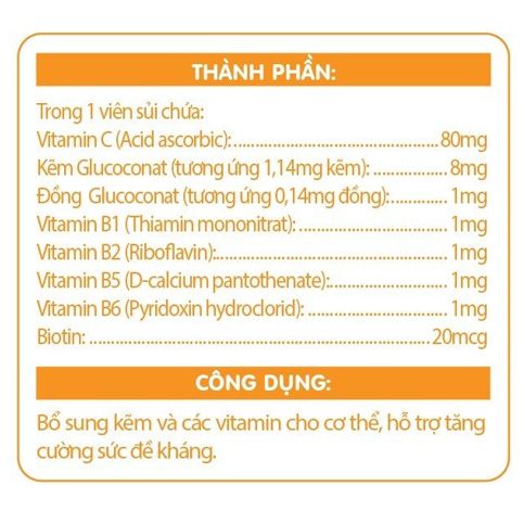 2. CÔNG DỤNG: Bổ sung kẽm và các vitamin cho cơ thể, hỗ trợ tăng cường sức đề kháng