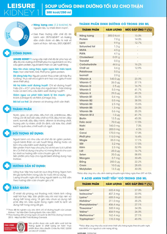 Thực phẩm dinh dưỡng Leisure Kidney 1 - Cho người bệnh thận cần giảm Protein - Lốc 3 hộp