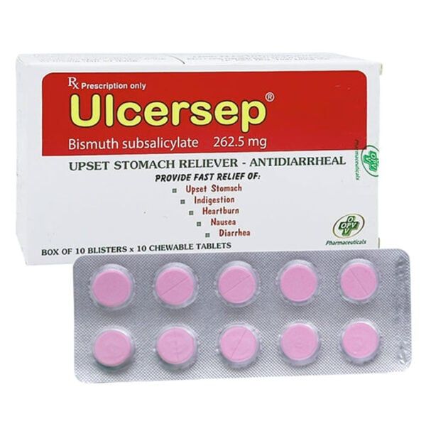 Ulcersep (Bismuth subsalicylate262.5mg) ( Hộp 10 vỉ * 10 viên)