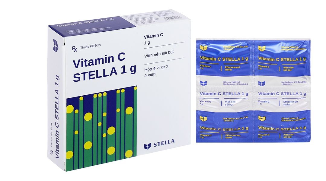 Viên sủi Vitamin C Stella 1g trị bệnh Scorbut, bổ sung vitamin C (4 vỉ x 4 viên)